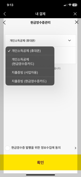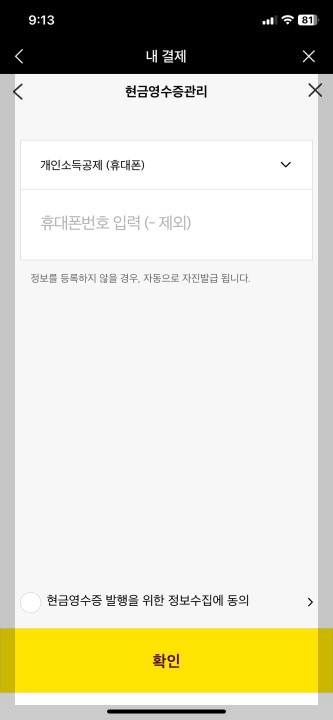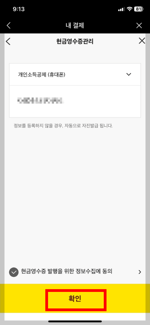 저는 개인소득공제(휴대폰)를 선택하여 진행했습니다.