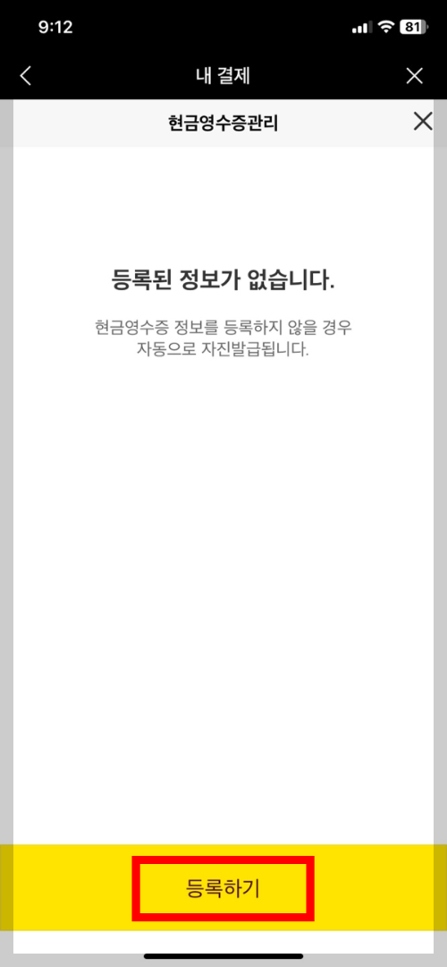 6. 등록된 정보가 없다는 안내 메시지가 확인됩니다. 아래의 [등록하기]를 탭 해 줍니다.