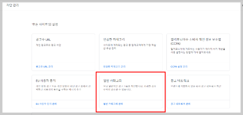 일반 카테고리는 가족, 건강, 금융, 부동산 등 원하지 않은 항목을 조금 더 세세하게 차단할 수 있습니다.