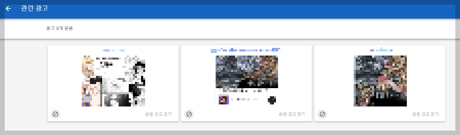 노출하고 싶지 않은 광고의 우측 하단에 있는 관련 광고 찾기를 클릭해 줍니다.