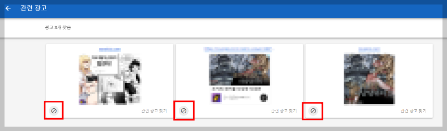 노출하고 싶지 않은 광고의 왼쪽 하단에 있는 차단 마크를 클릭해 주면 됩니다.