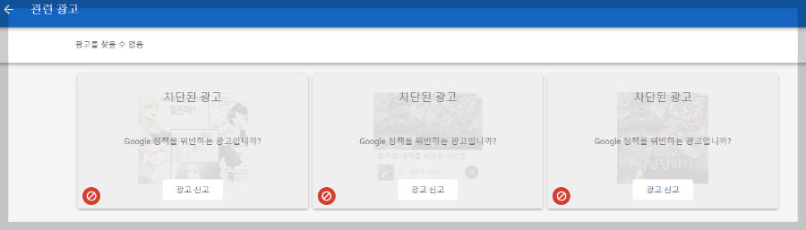 광고 심사 센터를 누르면 아래와 같이 내 블로그에 나오고 있는 모든 광고를 볼 수 있습니다.
