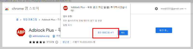 저는 Adblock Plus를 설치해 보려고 합니다.