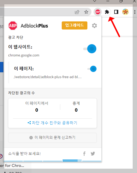 AdblockPlus 광고차단 프로그램이 설치된 것을 확인할 수 있습니다.