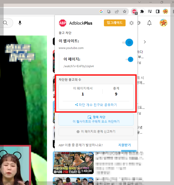 유튜브를 시청하면서 광고차단프로그램을 확인해 보면, 프로그램이 실행되고 있고