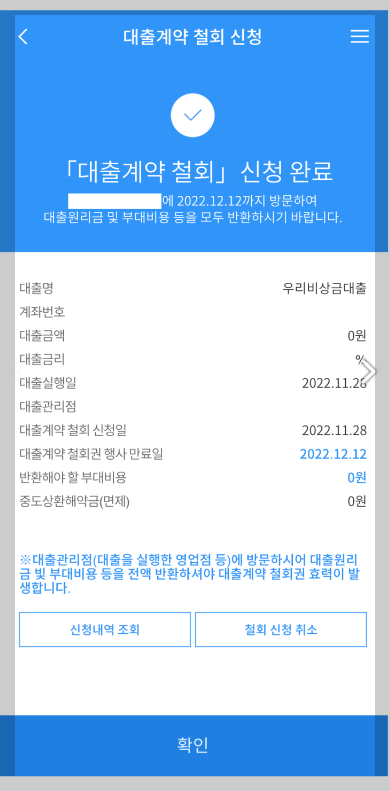 7. '대출계약 철회 신청'이 완료되었습니다.