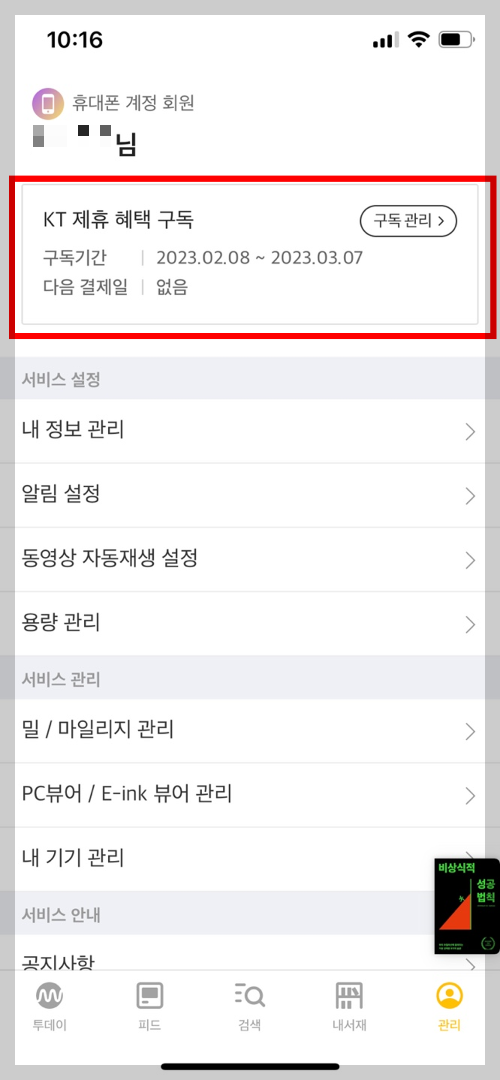 KT 장기혜택 쿠폰으로 밀리의 서재 구독하기