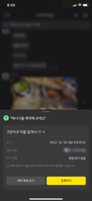 6. 메시지와 보낼 시간과 날짜가 지정되었다면 [등록하기]를 탭 해줍니다.