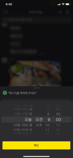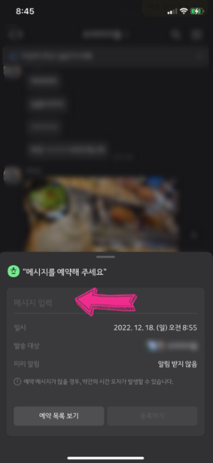 7.'메시지를 예약했습니다'라는 안내멘트가 나옵니다.