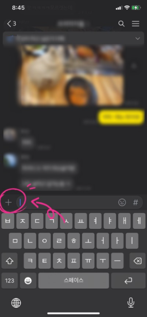 2. 예약메세지를 전송할 대화창을 열어줍니다. [ + ] 를 탭해 줍니다.