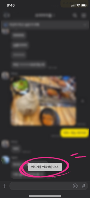 8. 지정한 날짜와 예약시간이 되면 예약메시지가 전송된 것을 확인할 수 있습니다.
